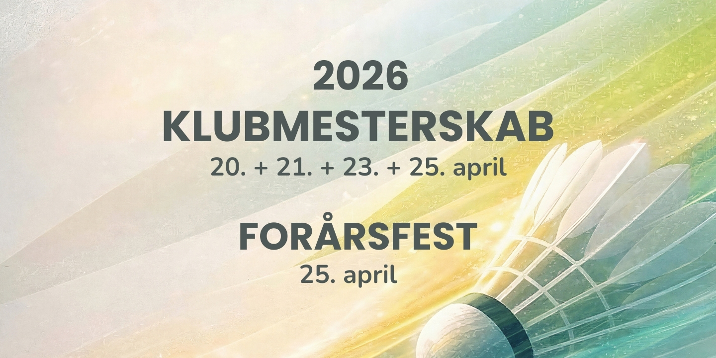 Foråret er landet i Hareskov Badminton, fjerene flyver og nu åbner vi for tilmelding til årets klubmesterskab 2026 og den store forårsfest! I uge 17 fylder vi hallen med fart, fællesskab og fjerbolde over fire dage, hvor vi både spiller og fejrer de nye klubmestre. Alle event er oprettet her op Holdsport, og åbne for tilmelding